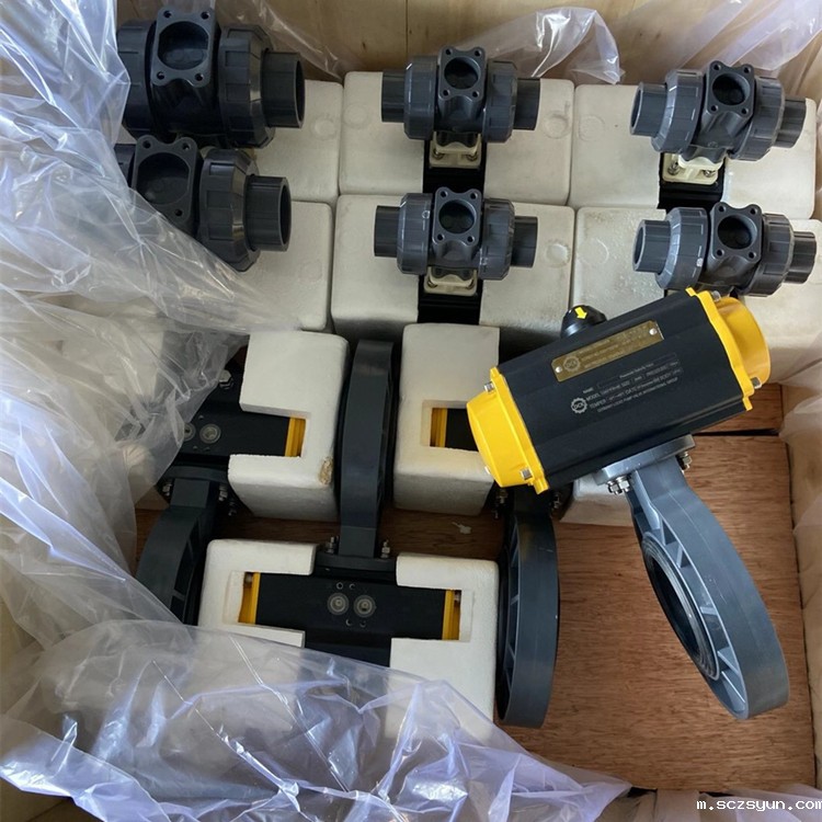 4、气动塑料蝶阀根据不同的介质有多种材料可选,耐腐蚀性强,体积小,适用于多种管路,应用范围广。