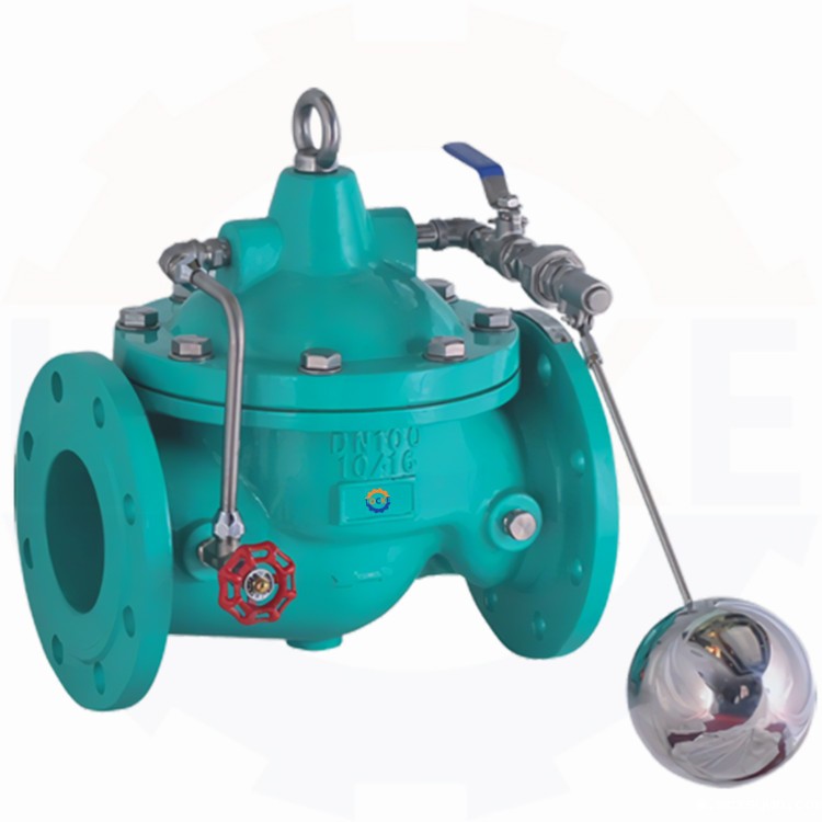 当水塔(池)的水面上升至设定高度时,浮球浮起关闭浮球阀,控制室内水压升高,推动主阀关闭,供水停止。当水面下降时,浮球阀重新开启,控制室水压下降,主阀再次开启继续供水,保持液面的设定高度。