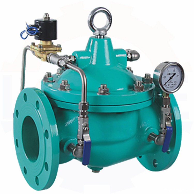 当电磁导阀关闭时,主阀控制室的水不能流出,控制室升压,推动膜片关闭主阀。