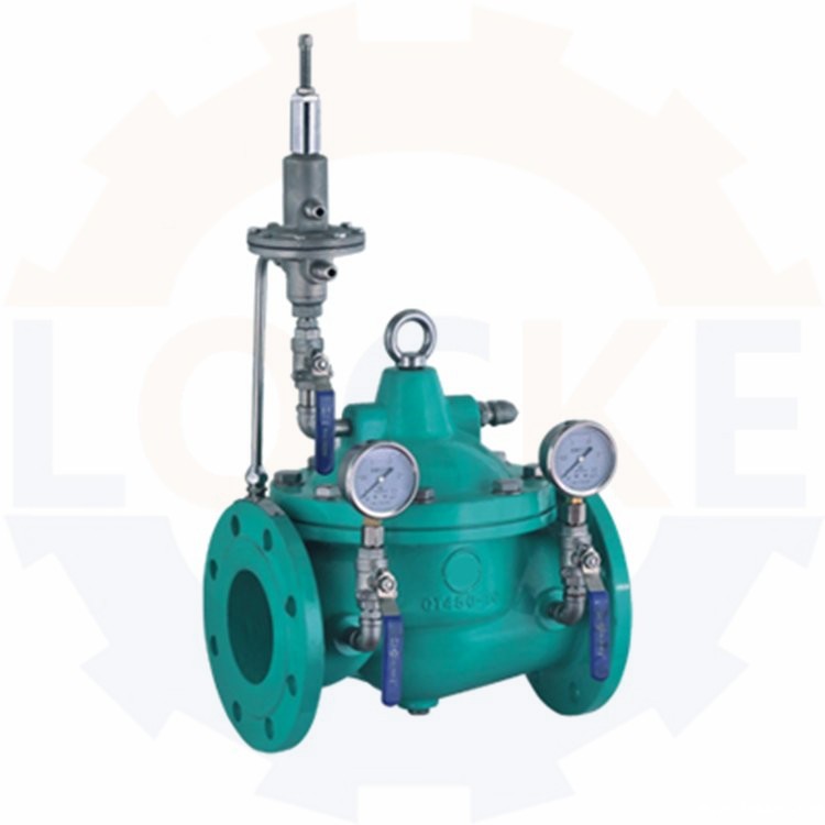 德国LOCKE洛克--进口压差旁通阀由主阀、压差控制导阀、针阀、球阀和压力表组成水力控制接管系统。通过导阀控制室,对压力变化信号进行比较,输出主阀开度信号,控制主阀开度,从而控制主阀的进口压差在设定值上。利用水作用力和调节压差平衡导阀,自动控制阀门的开度,通常用在中央空调导流、供水、回水之间平衡压差的阀门,使管道中介质保持恒定的压差值。该阀门可提高系统的利用率,保持压差的准确恒定值,并可较大限度地降低系统的噪音,以及过大压差对设备造成的损坏。